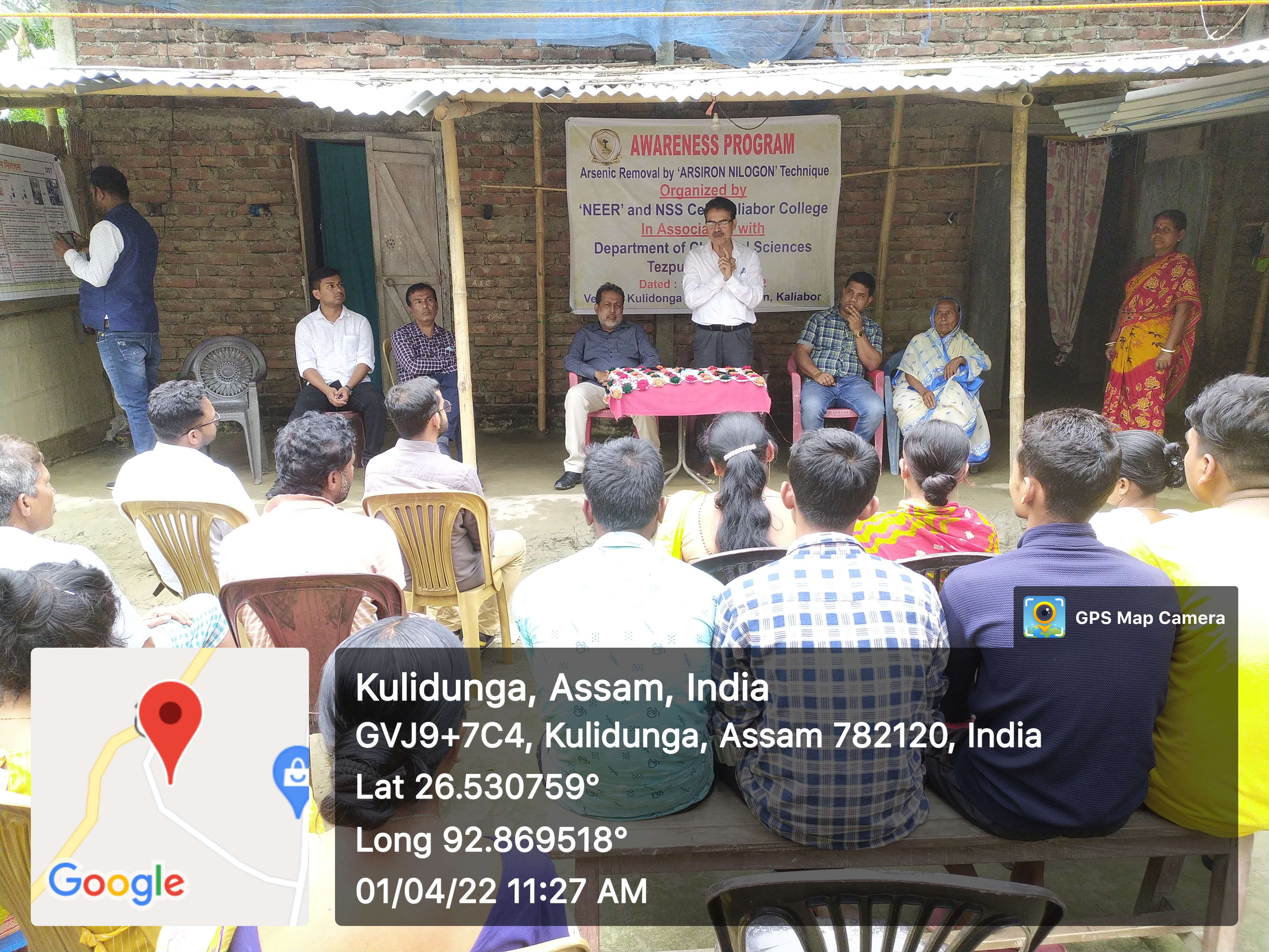 | 41 | Awareness Program on Arsenic | On 1st April 2022, an awareness program on Arsenic removal by ‘ARSIRON NILOGON’ Technique is organized at Kulidonga No 1 Ambagan, Kaliabor. The program was organized by NEER & NSS Cell Kaliabor College in association with Department of Chemical Sciences, Tezpur University. The awareness program was well attended by the villagers as the area was recorded a higher level of Arsenic in Water. | 2022-04-01 | View File |