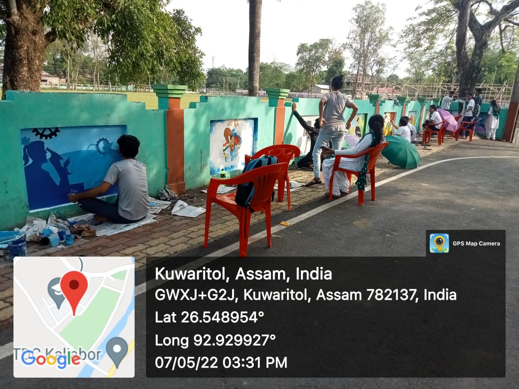 | 42 | Festival of Learning: Living Art: | On the occasion of Golden Jubilee celebration of the Kaliabor College, a 2 days painting festival was organized by NSS Cell in collaboration with Students’ Union & IQAC on 7 & 8 May, 2022. Famous painter Neelim Mahanta and his team attended the occasion as a Resource person. The program was well attended by the students of Kaliabor College as well as by the students of Kaliabor Girls’ Higher Secondary School. In the two days of time, the students were guided by the team and created massive artworks within the college campus. | 2022-05-07 | View File |