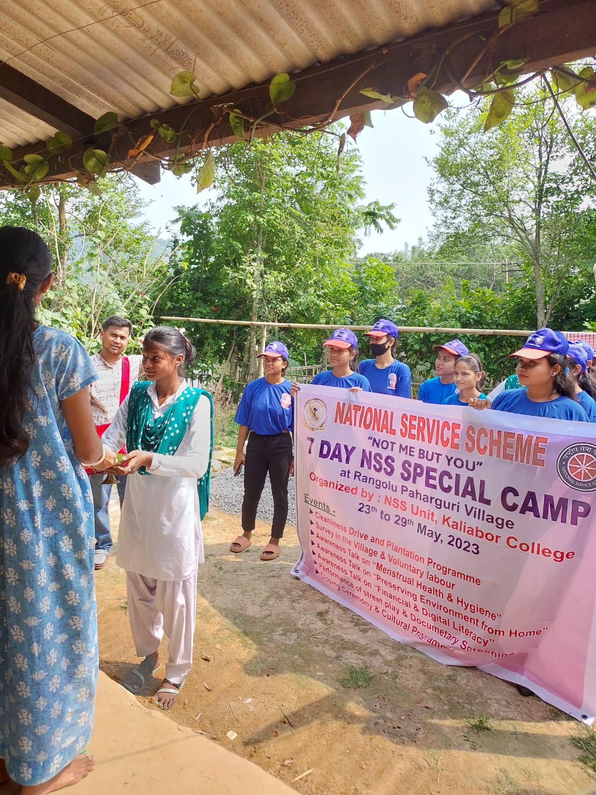 | 64 | NSS SPECIAL CAMP, 2023 DAY-7 29/05/2023 CLOSING CEREMONY & CULTURAL EXCHANGE PROGRAMME | The NSS Special Camp of NSS Kaliabor College Unit was concluded on the Day 7 with a vibrant Closing Ceremony & Cultural Exchange Programme. The programme was well attended by the villagers, NSS volunteers & faculty members of Kaliabor College. Dr. Uttam Kumar Baruah, Principal of Kaliabor College delivered the closing speech of the entire 7 Day long programme. The volunteers performed cultural events including dances both modern & traditional, songs, poems. The Rangolu Paharguri villagers also performed their traditional Jhumur & Nepali Dance. The members NCC Unit Kaliabor College along with the ANO Dr. Dilip Kumar Sonowal also attended the event. | 2023-05-29 | View File |