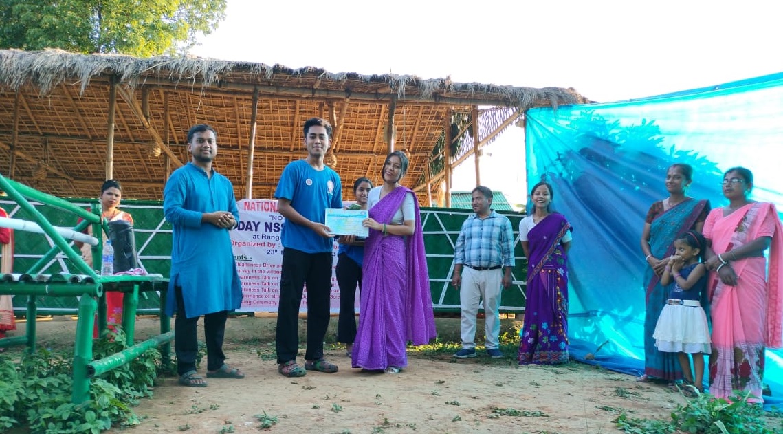 | 58 | NSS SPECIAL CAMP, 2023 DAY 1- 23rd May, 2023 CLEANLINESS DRIVE, PLANTATION PROGRAMME | On Day 1 of the Special Camp, the volunteers were engaged in a cleanliness awareness drive among the villagers. Further, the volunteers organized a plantation drive within the Rangolu Paharguri Village. Plant saplings with medicinal value along with fruit plants were planted inside the village specially in the Paharguri Anganwadi Kendra and Gram Mandir. | 2023-05-23 | View File |