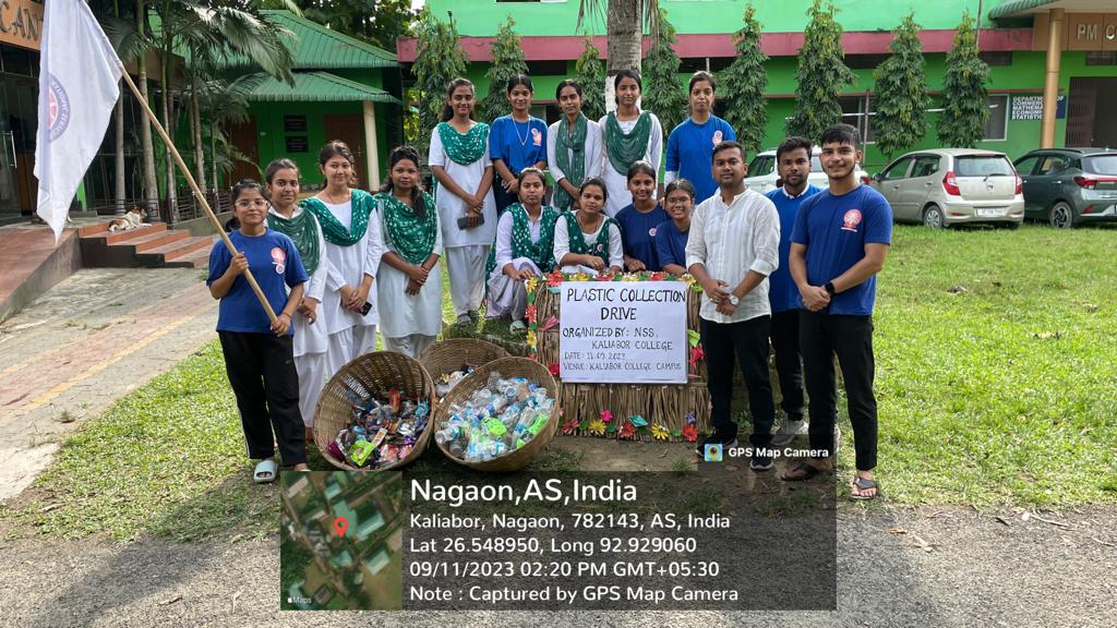 | 71 | Plastic Collection Drive within the College Campus: | A Plastic Collection Drive was organized by the NSS Unit of Kaliabor College on 11th September of 2023 within the Campus of Kaliabor College. The prime goal of the plastic collection drive was to create awareness among the students about the hazardous effects of plastic on our environment. 15 nos of NSS Volunteers actively participated in the event. | 2023-09-11 | View File |